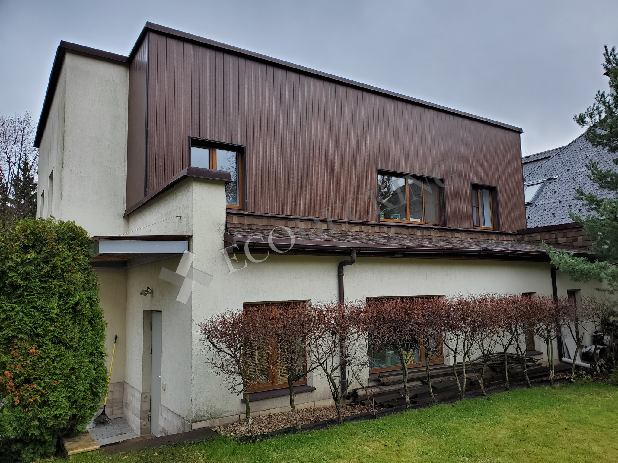 Фасадная доска Ecodecking Классик цвет шоколад в частном доме. Монтаж производился в ноябре 2019 года.